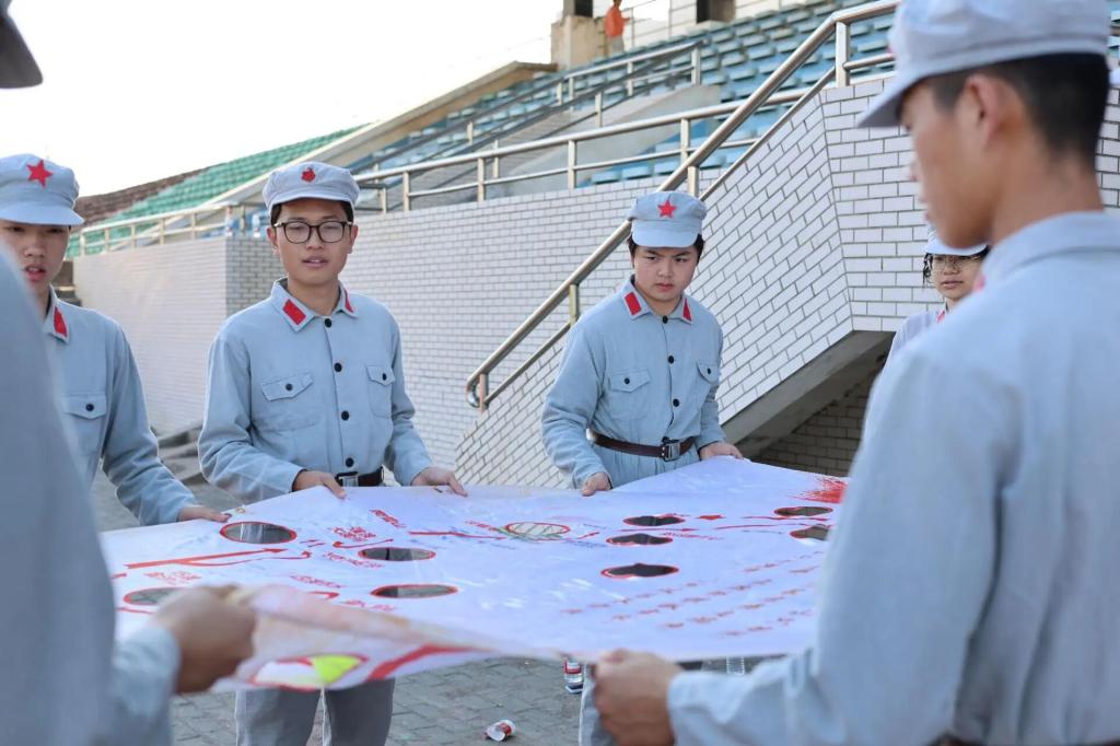 活动伊始,各小组在领队的带领下迅速集结,推选队长、确定队名与队歌、绘制队旗。团队组建过程紧凑有序,学员们热情高涨,在互动中快速融合,展现出蓬勃朝气与团队凝聚力。随后进行的红歌拉练环节,将现场气氛推向高潮。《黄河大合唱》、《歌唱祖国》等经典旋律接连响起,学员们以嘹亮歌声唤起红色记忆,在音符跃动中传递革命精神,用青春之声致敬光辉岁月。