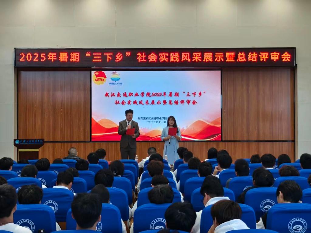 11月4日下午,我校2025年暑期“三下乡”社会实践风采展示暨总结评审会在明志楼一号会议室隆重举行。特邀武汉工商学院团委书记邱玉添老师,武汉交通职业学院党委学生工作部蔡传欣老师、大学生艺术团团长张翅翔老师、党委宣传部汪云凤老师、教务处许海老师担任评委,来自全校的27支实践团队齐聚一堂,共同展示实践成果,分享青春感悟。