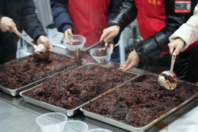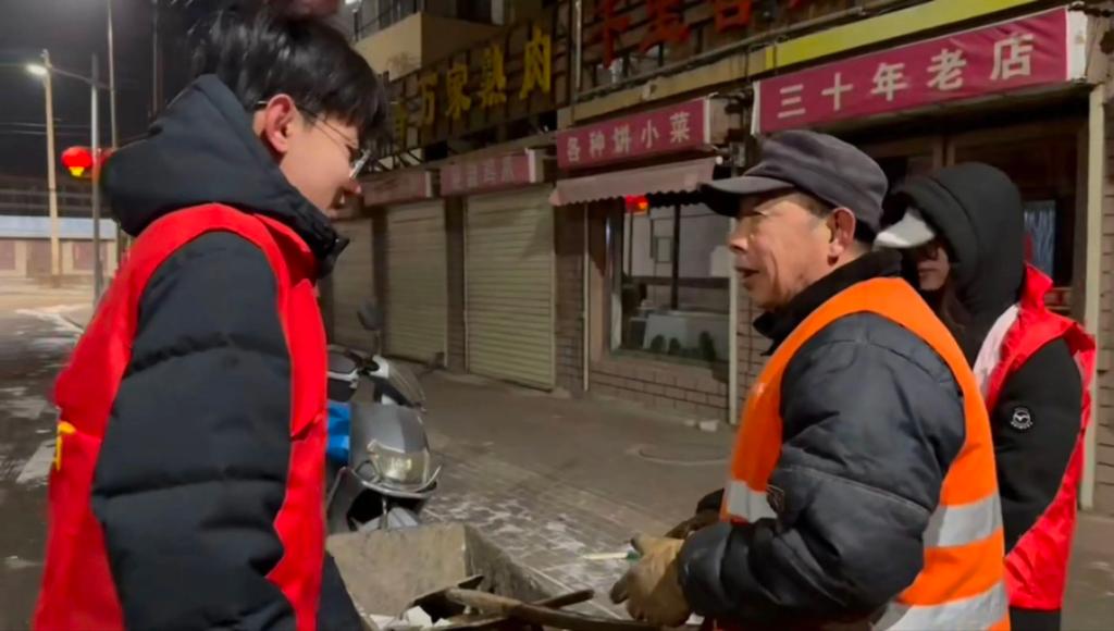 1月26日腊八节当天,寒意袭人,山西省平鲁区的环卫工人们早已穿梭在城市的街头巷尾,用双手守护着城市的洁净。为致敬这群“城市美容师”,24造价(1)班田建平与其他返家乡大学生志愿者们提前筹备,采购江米、红豆、红枣、高粱等腊八食材,熬制一锅锅热气腾腾的腊八粥,奔赴各条路段,将这份冬日的暖意送到环卫工人们手中,让环卫工人们感受到了来自家乡青年的敬意与关怀。