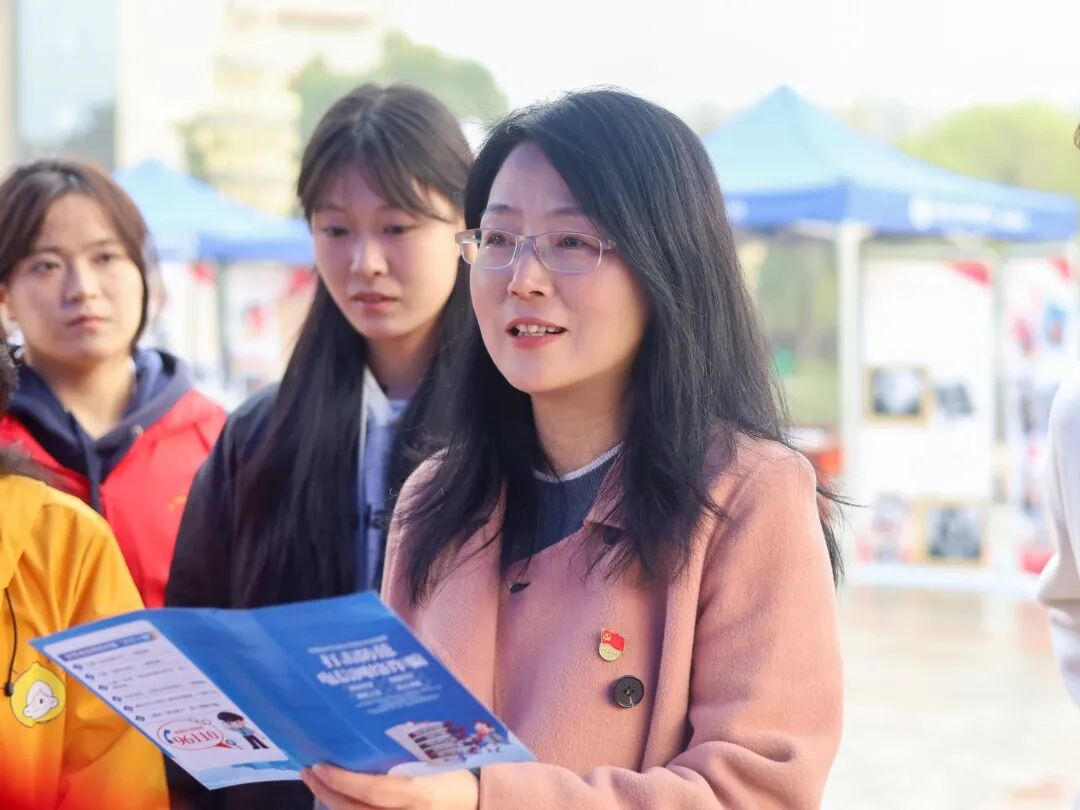 党委委员、副校长胡琴来到反诈大闯关活动摊位,参与互动体验。她询问了同学们对反诈知识的掌握情况,并对本次反诈宣传工作的形式与成效给予肯定。她表示活动有效提升了师生反诈意识,对筑牢校园安全防线具有重要意义。