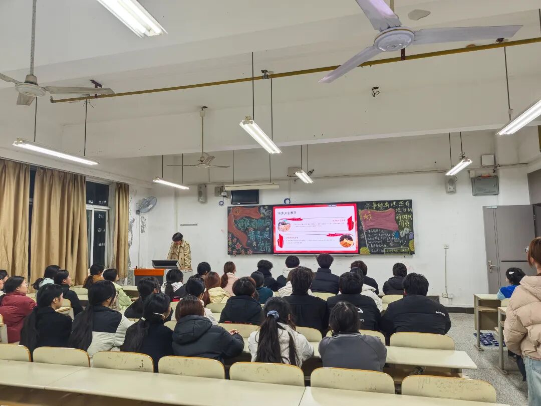 首先,主讲人围绕习近平总书记重要贺信核心内涵展开解读,通过理论阐释、案例分享、互动交流等形式,带领团员青年深刻领会贺信“立意高远、思想深邃、情真意切”的鲜明特质,明晰其对青年工作重要思想的丰富发展。随后,结合贺信中对青年一代的殷切期望,系统梳理新时代青年在中国式现代化建设中的使命坐标,对照学业实践与成长规划,剖析个人理想与国家发展的同频路径,引导大家找准奋斗切入点。最后,以“践行贺信精神,挺膺青春担当”为落脚点,倡导团员青年将学习感悟转化为实干行动,在专业深耕、实践创新中锤炼本领,在服务大局、勇挑重担中绽放芳华。